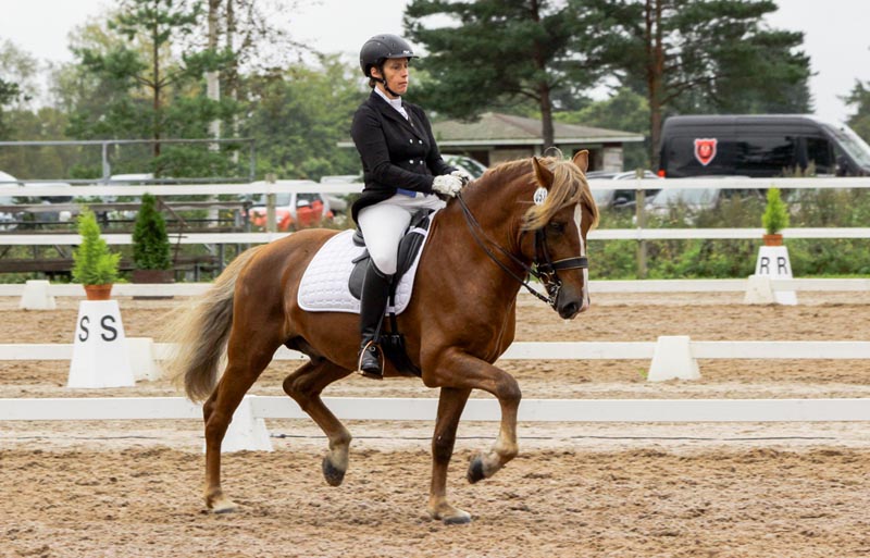 omistaja Nerita VRL-12557, Rähinän suomenhevoset ✧ kasvattaja Lindgård VH23-018-0721 ✧ kenttäpainotteinen, taso CIC1 Kekrikummituksesta odotettiin vähän isompaa suomenhevosta vanhempien perusteella, mutta Keke jäikin vähän pienemmäksi. Se ei meitä haitannut, sillä luonteeltaan ori on aivan loistava. Se rakastaa rapsutuksia ja on melkoinen nallekarhu, mutta se on myös kova poika tekemään töitä ja onkin melkoinen monitoimihevonen. Tuntuu ettei ole mitään, mihin Keke ei lähtisi. Se on mitä helpoin hoitaa ja ei pistä vastaan mihinkään. Korvista välillä saattaa nähdä jos toimenpide ei nyt ihan miellytä, mutta muuten se kököttää siinä mihin se on laitettu. Matkustaminen, taluttaminen, eläinlääkärikäynnit, vieraat paikat. Kaikissa Keke käyttäytyy kuin mikäkin herrasmies ja harvemmin tätä hevosta on tarvinnut hävetä. Kaiken kukkuraksi ori rakastaa lapsia ja toimii niiden kanssa erityisellä varovaisuudella. Keke tekee mielellään töitä ja koskaan ei siitä jää kiinni. Se vääntää mielellään koulua ja pyrkii miellyttämään ratsastajaansa. Sileällä se on melko rauhallinen, mutta ei missään tapauksessa hidas tai tahmea. Ori reagoi herkästi ja nopeasti apuihin, mutta ei lähde kiihdyttelemään. Ne alkaa sitten kun lyödään esteet eteen ja Keken moottori hurahtaa todellisesti käyntiin. Raudikko rakastaa hyppäämistä ja se voisi tehdä sitä aina vain. Se on tarkka ja kääntyy pienen kokonsa ansiosta melko näppärästi. Jarrukin toimii, mutta kaasukin löytyy melko herkästi. Pienikin pohkeenkäyttö saa orin lähtemään eteenpäin kuin tykinsuusta. Maastoesteillä hieman Kekellä hukkuu korvat, mutta se hoitaa homman kotiin. Kunhan näyttää oikean esteen, niin tämä suomenhevonen kyllä hoitaa. Ajollekin se on opetettu, joten kaikki onnistuu.